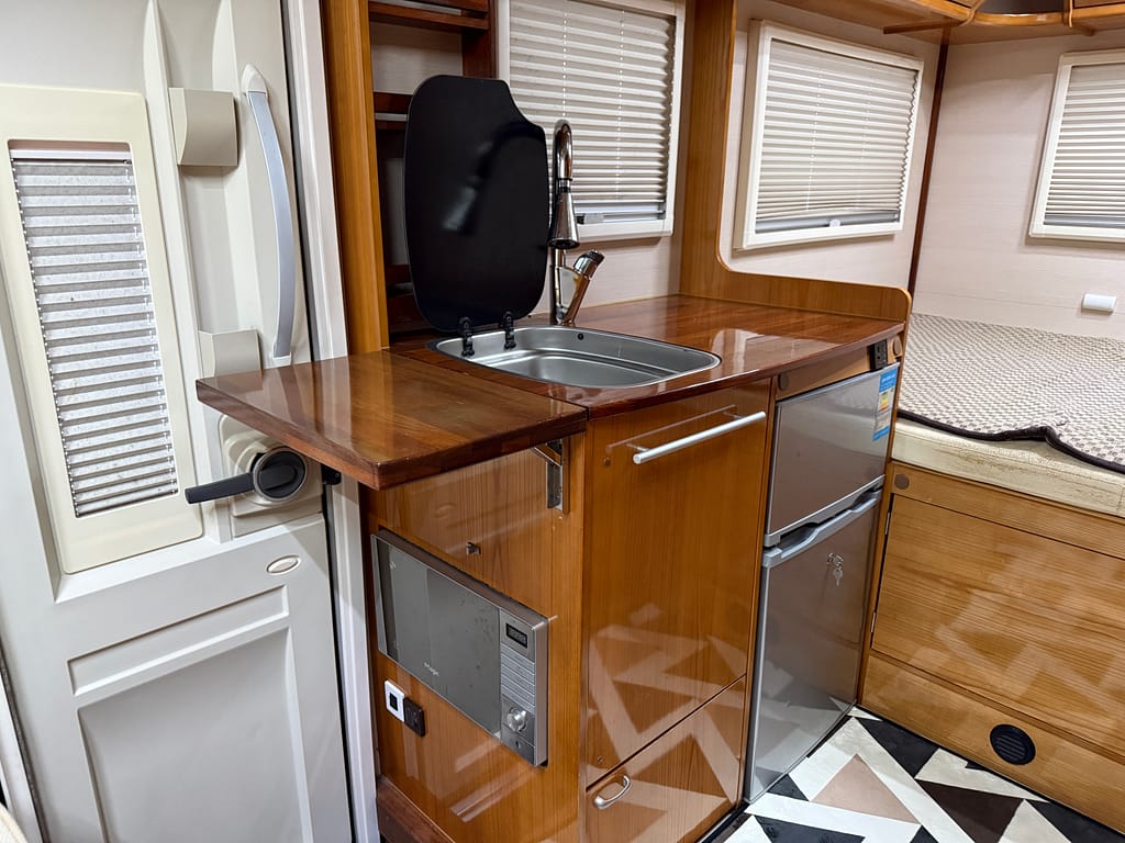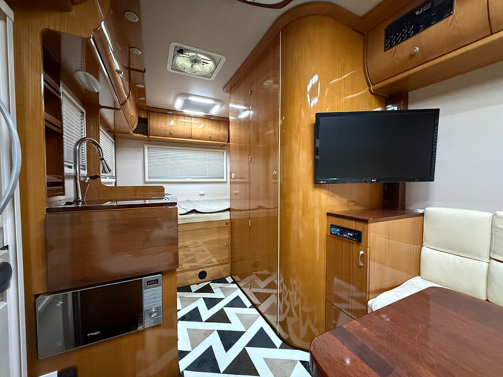 인산철 배터리 400A / 천정 전체면 태양광 설치 / 맥스팬 / 루프형 에어컨 / 청수탱크 / 오수탱크 / 후방카메라 / 네비게이션