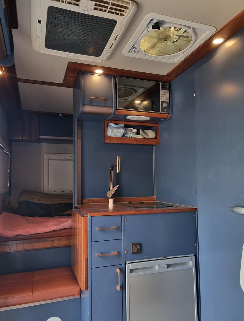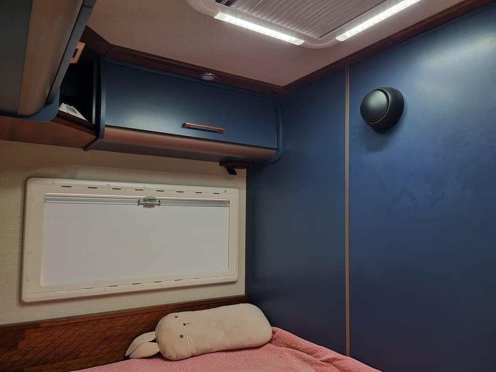 3.5M 수동어닝, 청수 탱크, 오수 탱크, 외부 물 주입구, 12V 압력식 워터펌프, 외부 샤워기, 외부 전원 인입구, 220V 자동 릴선(15M), 출입구 1단 수동 스텝, 태양광 판넬 315W, GRP 복합패널, 105A 딥 사이클 배터리 3개, 태양광 컨트롤 MPPT 방식(30A), 주행 충전기(120A), 한전 충전기, 정현파 인버터2Kw, 중앙 집중식 메인 컨트롤 패널, 디젤 온수 겸용 무시동 워터히터(독일제), 바닥 난방, 고정식 카세트 변기, 맥스펜(전자동 환기 시스템), 도메틱 에어컨, 환기창, 싱크대, 내부 스마트 TV(미러링 포함), DC 냉장고, 최고급 전자레인지, 블루투스 오디오/스피커, 벙커 창문, 후방 상시 카메라, 조수석 열선, 풍부한 수납공간, 벙커 침실, 후미 침실, 인산철 배터리(480A), 피아마 어닝(3.5M)
