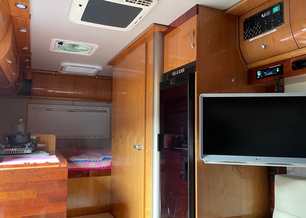 2열 뒤보기 시트, 최고급 사양 이중아크릴 창문(블라인드&방충망), LED 루프 벤트 2EA, 최고급 사양 출입문(방충망 일체형), LED 매립등, 이태리 포플러 친환경 보드, 변환식 테이블, 최고급 쇼파, 벙커 내부 단열 쿠션 마감, 고급 냉온 수전, 화장실(세면대, 샤워수전, 수납장욕실바닥), 프리미엄 랩핑, 외부 서비스 도어